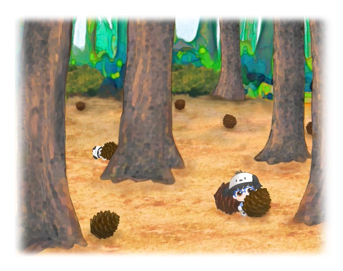 先程までのさんぽ、「真似っこするあのこ」より 新規絵の奥にいるヤコフじーじリスペクト真似っこぽゆ。