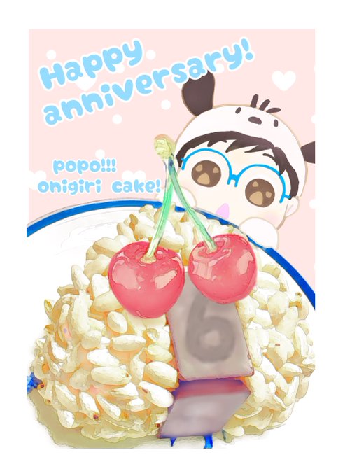 💐💐 #勝手にぽゆ記念日6回目 💐💐 💐 #ぽむぽちゃに6年分の花束を 💐 ぽゆ、おめでとう✨ ありがとう✨ 🍙おにぎりケーキでおいわいぽ🍰