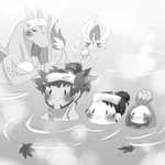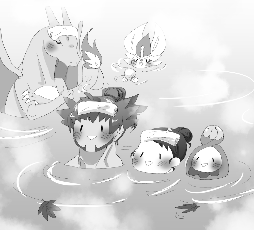 温泉に入るダンユウちゃんたち