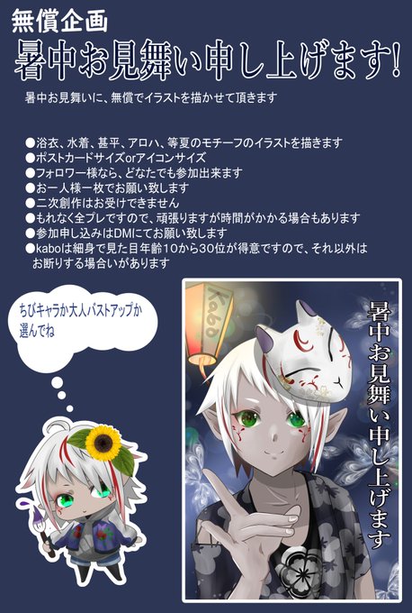 2 14 暑中見舞い無償企画スタートします!参加はチラシに目を通してからDMにてお願いいたします! #イラスト #無償 #無償企画 #絵師無償 22/07/18 18:34