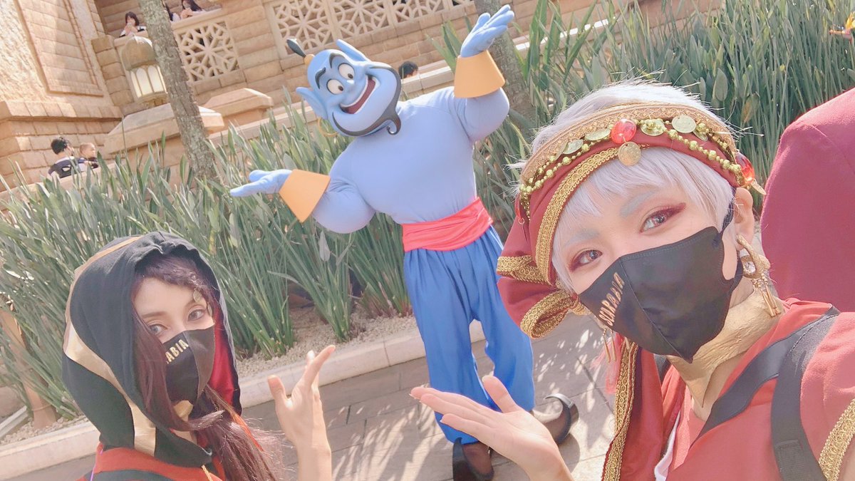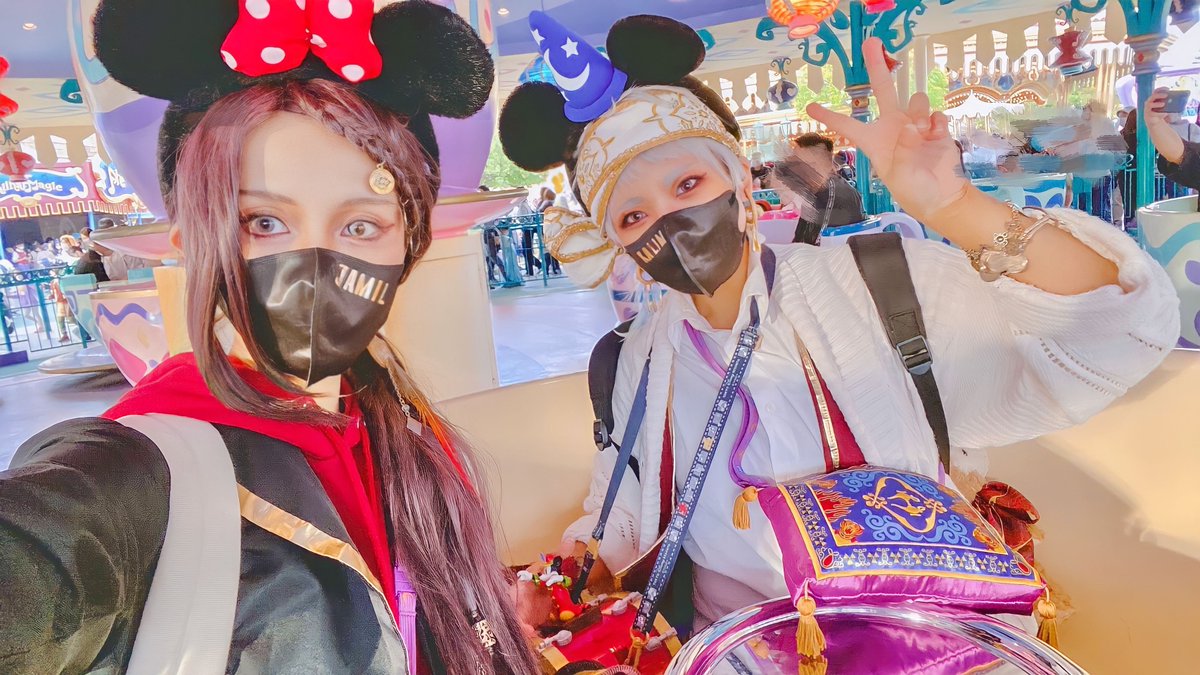 【ツイステ/スカラビア】 *⋆⸜ HAPPY SCARABIA!! ⸝⋆* #Dハロ仮装2022 ====== お揃いの耳も、絨毯のショルダーも、ポップコーンバケットも、リュックも🧸達も…お気に入りぜ〜〜んぶフル装備で遊べて楽しかったーーー!!!🎊🎉