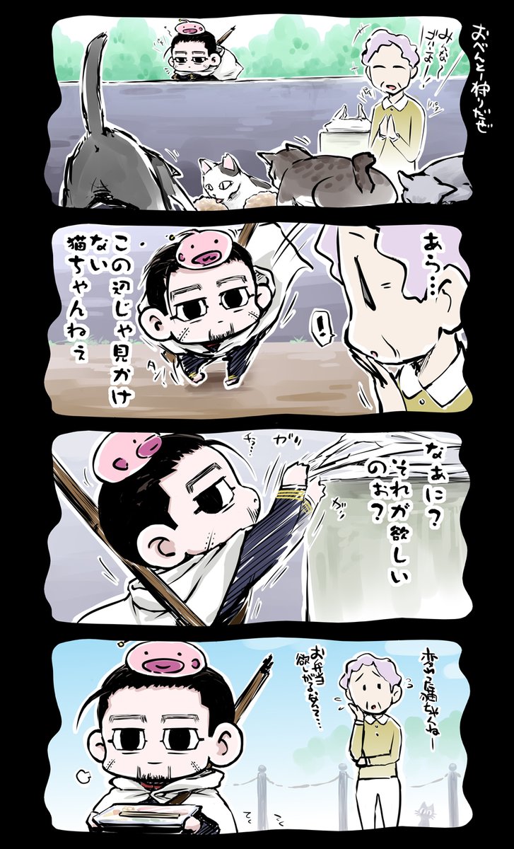 25 285 オガタの4コマ㊴ なでなで… #金カム #尾形百之助 #4コマ漫画 23/01/08 17:53