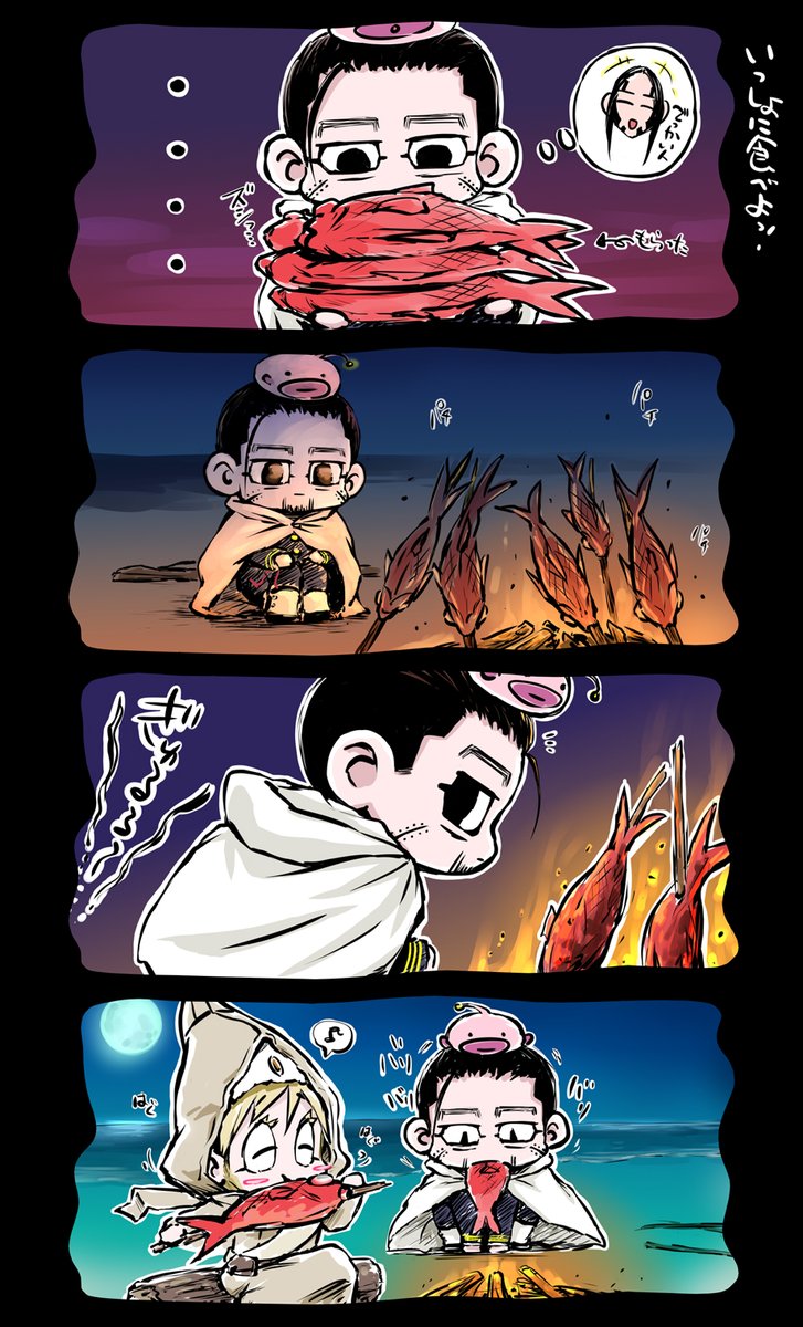 91 956 オガタの4コマ⑲ 前回の海の話の続きです。すぐにアップするつもりが時間あいちゃいました、、 #ゴールデンカムイ #尾形百之助 #4コマ 22/08/11 11:42