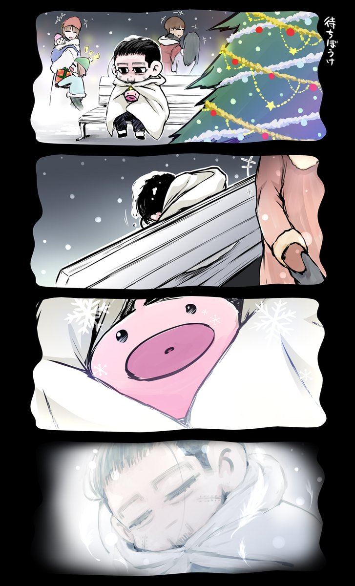 6 53 オガタの4コマ㉟ 頭巾ちゃん遅いなぁ… #ゴールデンカムイ #尾形百之助 #4コマ漫画 22/12/10 17:43