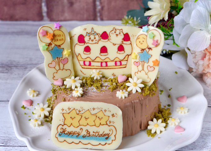 ちいかわ&ハチワレちゃん誕生日おめでとう🎉いつも癒しをありがとう☺️ 三つ星レストランの話が好きなのでそれをオマージュした誕生日ケーキを作りました🎂✨(キャラチョコでかすぎた😂) #ちいかわ生誕祭2022 #ハチワレ生誕祭2022 #ちいかわファンアート