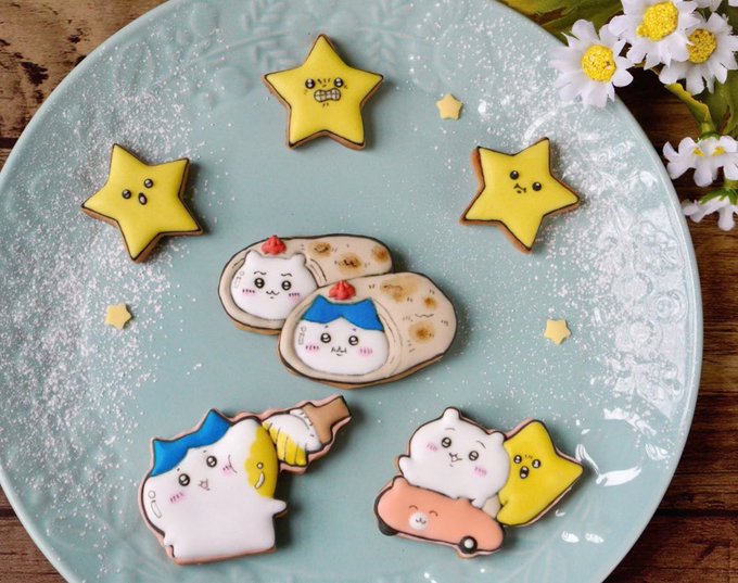 遅ればせながらちいかわ&ハチワレちゃんお誕生日おめでとう🎂💕 先日ナガノさんが描かれていたお誕生日イラストのちいかわ達をアイシングクッキーにしました☺️🍪 お衣装凝ってて難しかったけど可愛い〜✨ #ちいかわファンアート #お菓子作り