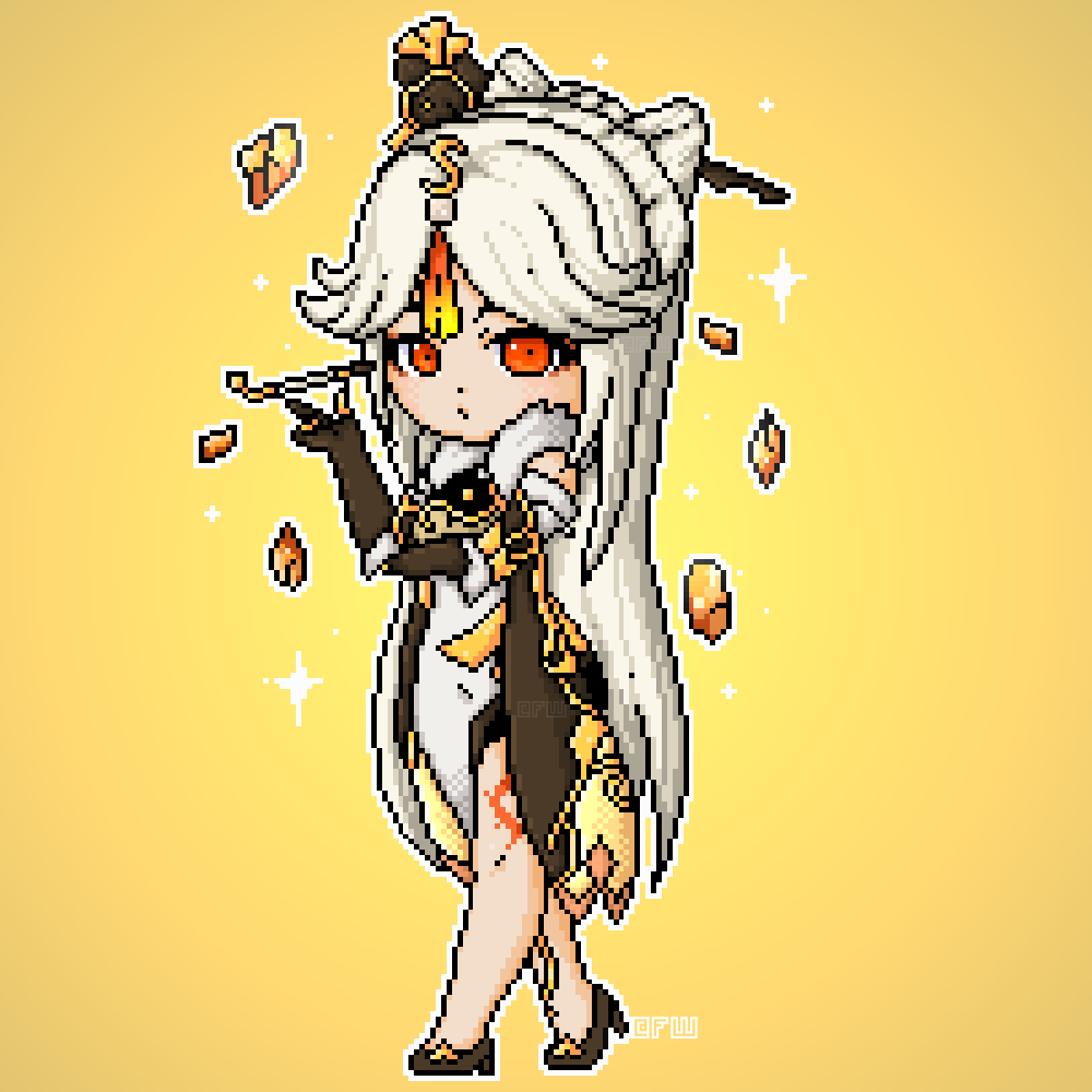 ♪Silly-churl, billy-churl, silly-billy hilichurl. Frilly-churl, willy-churl, frilly-willy hilichurl♪ Ah, hehe... ♪♪♪ ヽ(ˇ∀ˇ )ゞ #genshinimpact #genshinimpactfanart #pixelart #pixelartist #Hutao #pyro