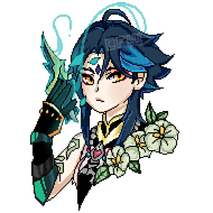 " If you see him, remind him to take care of himself, for his sister's sake... " Kamisato Ayato -💧🌧 #ayato #kamisato #hydro #genshinimpact #genshinimpactfanart #pixelart