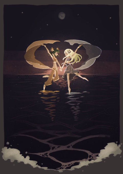 太陽と月が交わる新月の夜だそうで…🌑 お気に入りのソル・カマル絵再掲です #一斉ソル・カマル #ソル・カマルの曲が聴きたい #ライラさんにアイスとボイスを #ナターリアを世界でイチバンに