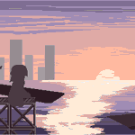 10 47 ドット絵 沈まぬ夕陽に照らされる町 #ドット絵 19/02/11 00:56