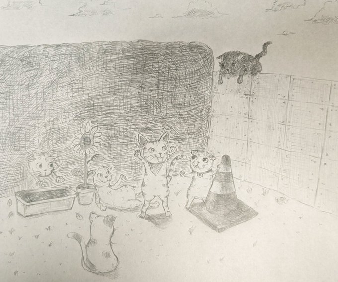 1 7 「猫の集会」 #イラスト #オリジナル #ネコ #シャーペン 23/03/22 09:16