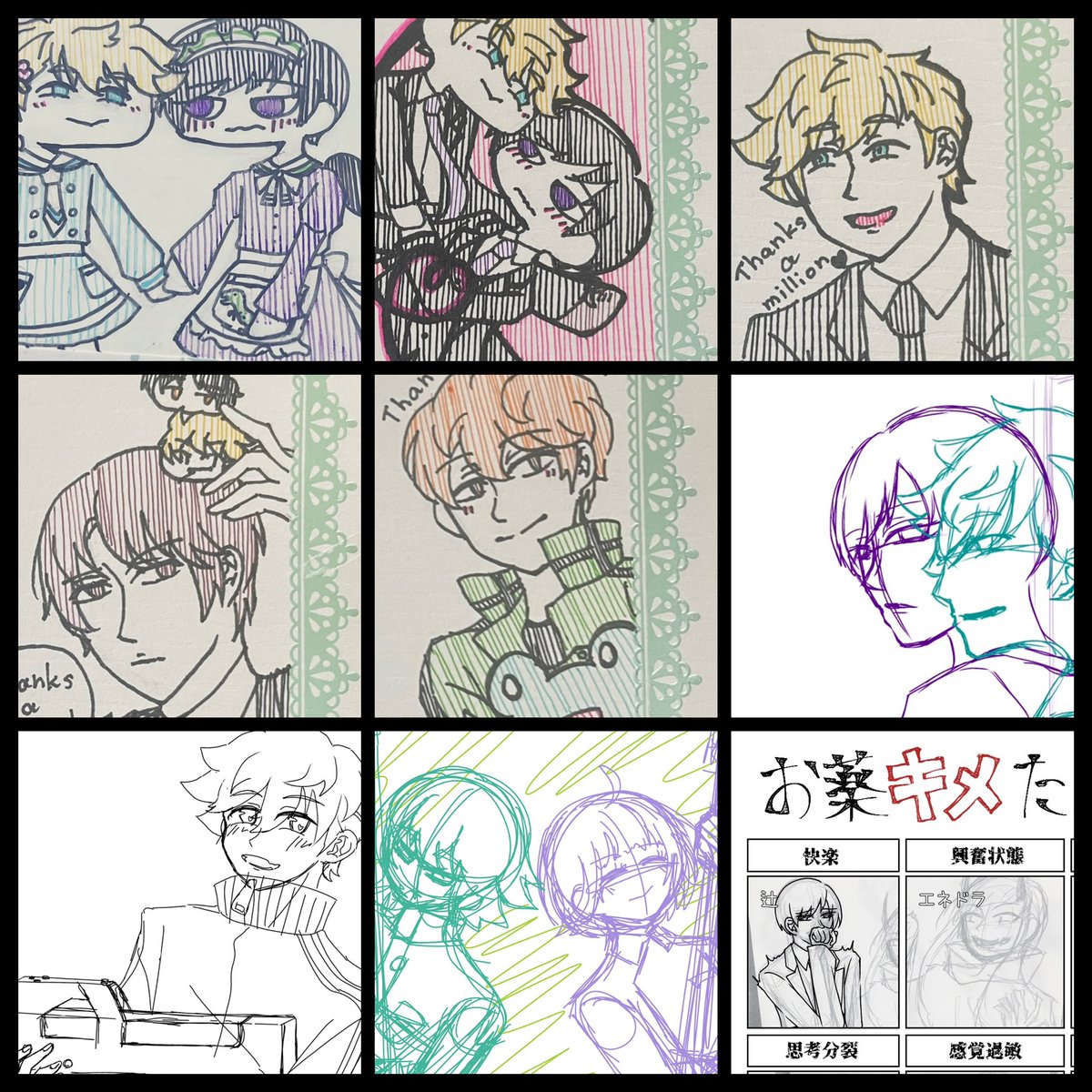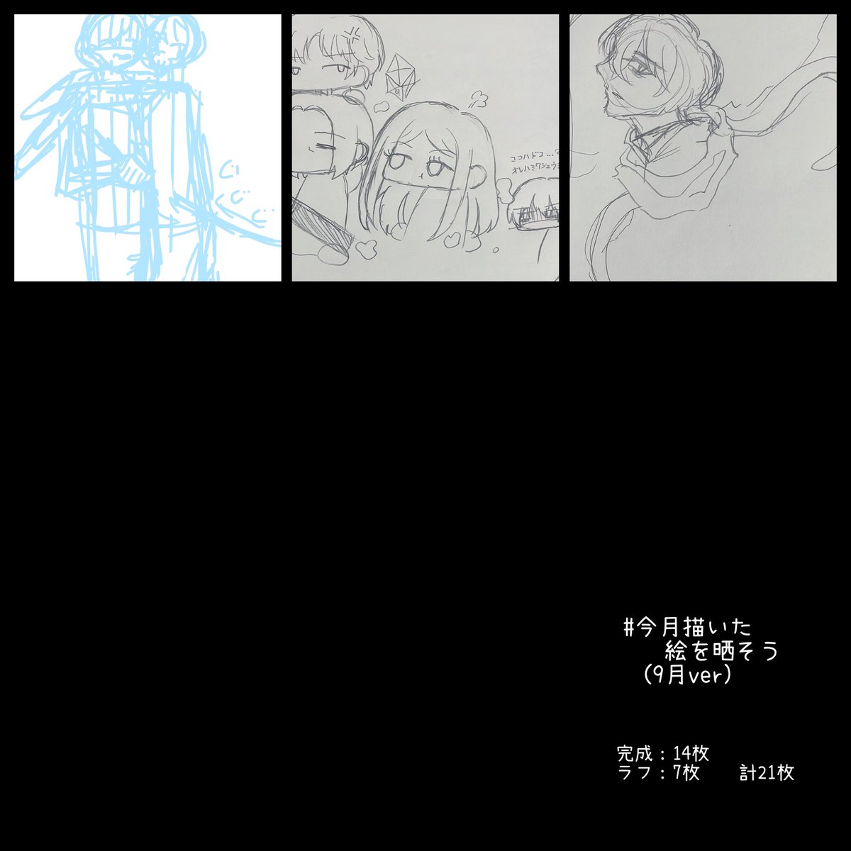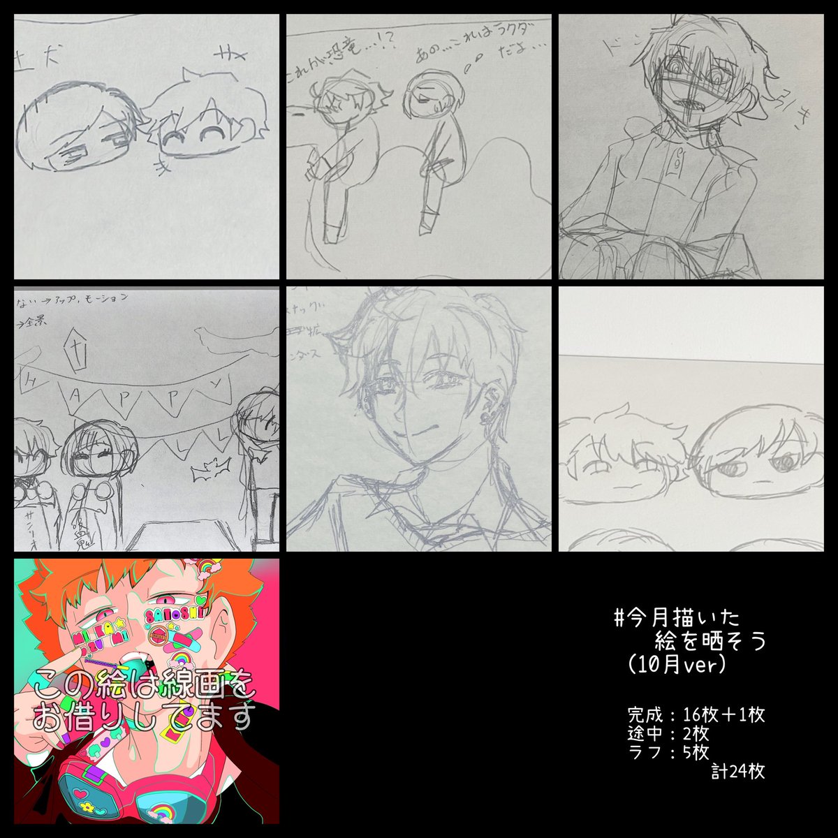 #今月描いた絵を晒そう ⚠️腐向け含。 相変わらず課題原稿をやってたり中途半端だったのを進めたり、動画作ったりでした。 ただワ以外を結構描いてたりもしてたので、塗ってない絵もあるのにまとめたら全然枚数なくて震えました。 もっと描きたいね……。