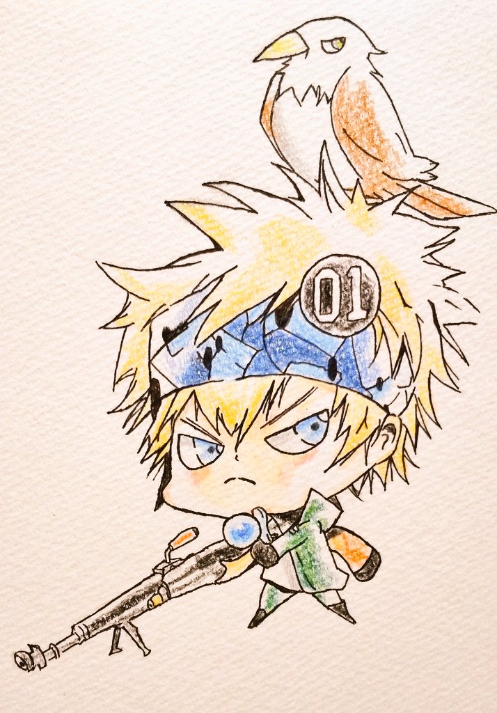 D.Gray-man アレンのイラスト完成! ティムどうしても入れたくて無理やり入れました! #Dグレ #模写