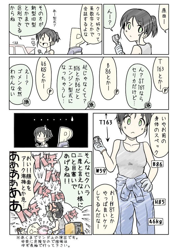 とある日の原田美世さん。久しぶりの作業ツナギでおなかチラリ。