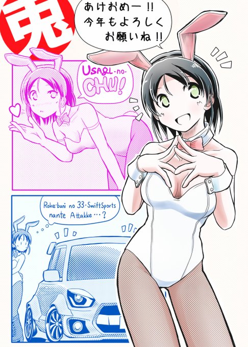 とある日の原田美世さん。ウサギ年なので白バニー&ロケバニ風33スイスポであけおめことよろです。