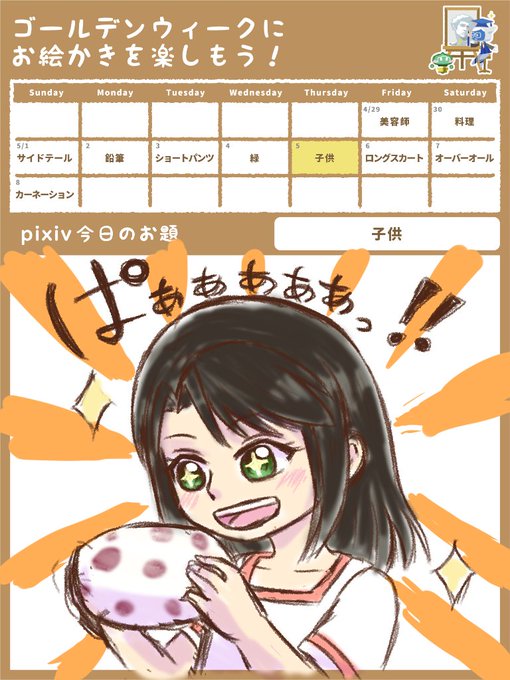 #胡蝶蘭と愉快な仲間たち #pixiv今日のお題 #子供 【雑お絵かき】 幼少期のリエル。この時から食べ物に目がなく、表情も分かりやすい。 『わーい!おっきいお大福だ〜!』 sketch.pixiv.net/items/88971605…