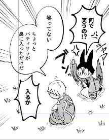 原稿から 野生のちびなりと髪がのびかけのセノ