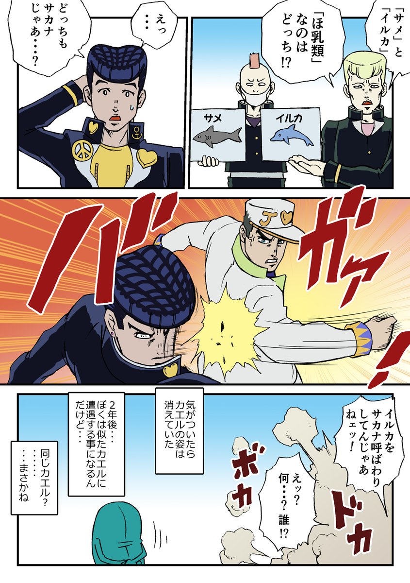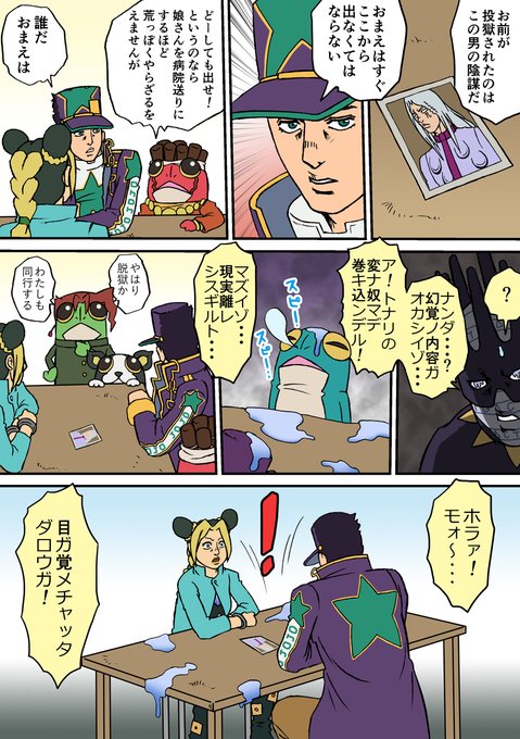 祝・6部アニメ化! 空条承太郎の娘 徐倫は、無実の罪で逮捕され、「マ」で始まる行為を目撃されてしまう。 彼女はこの先に待ち受ける運命と、すぐ近くにいる得体の知れない生き物の事をまだ知らないのであった・・・ #アメリカのメメ太くん #ストーンオーシャン