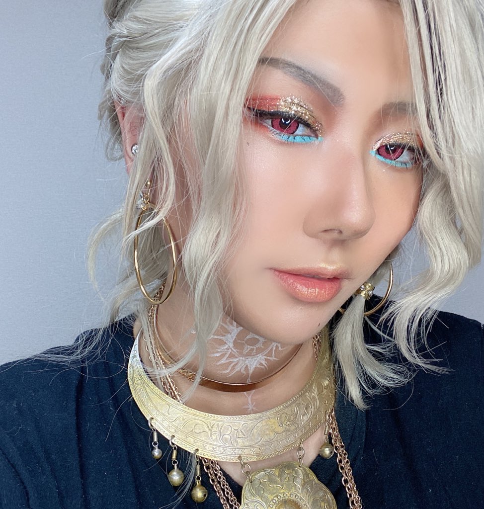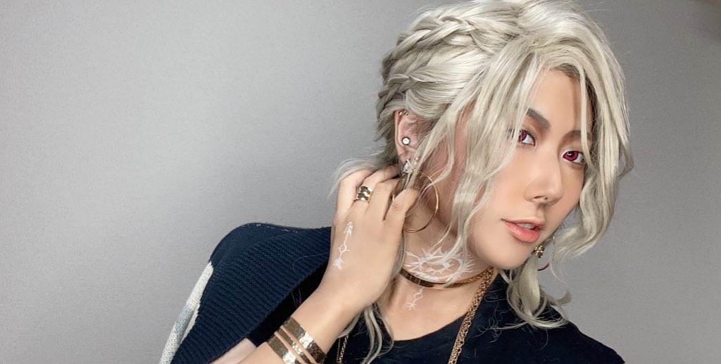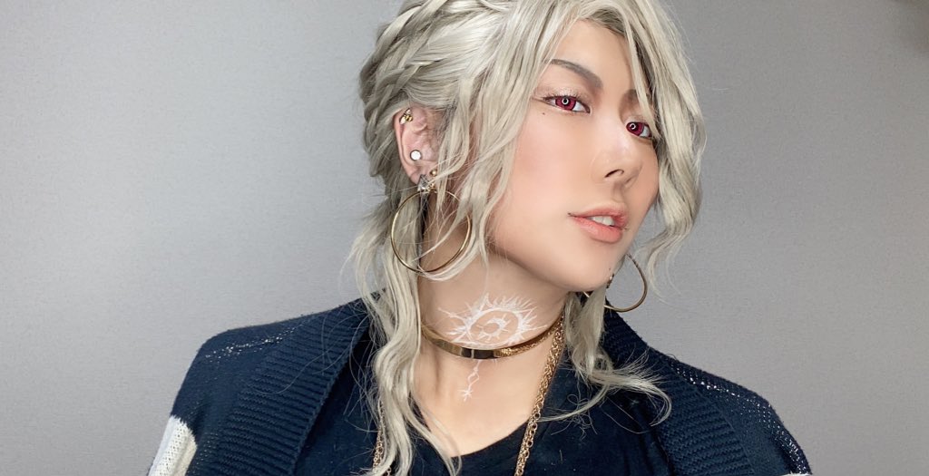 #リプ来た設定の創作男子を宅コスする 褐色 ほくろ ワンポイントタトゥー 派手色シャドー 赤目 レース リプくれたあとりちゃん、まめちゃん、らびたさん、きざさん、千鶴さんありがとうございましたー!!楽しかった🙌 素顔メイクVerと一緒に上げる🙌🙌🙌 顔の角度が驚くくらい同じだなw