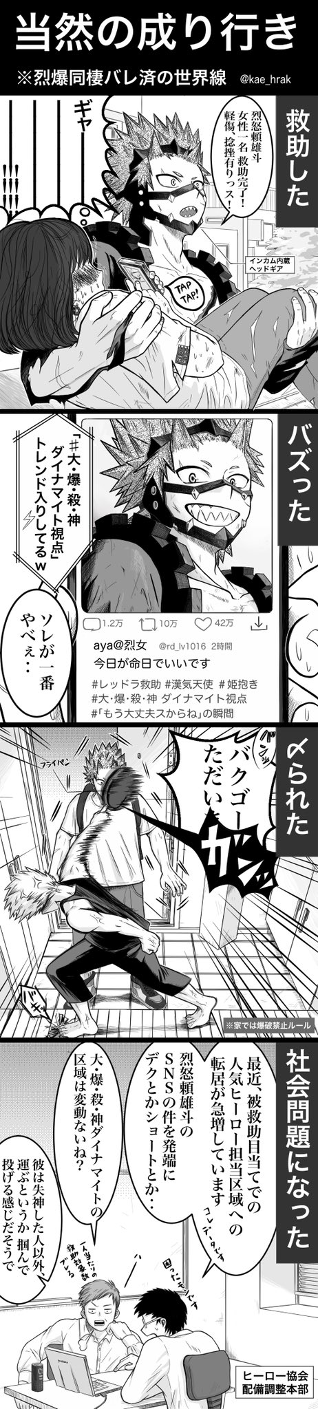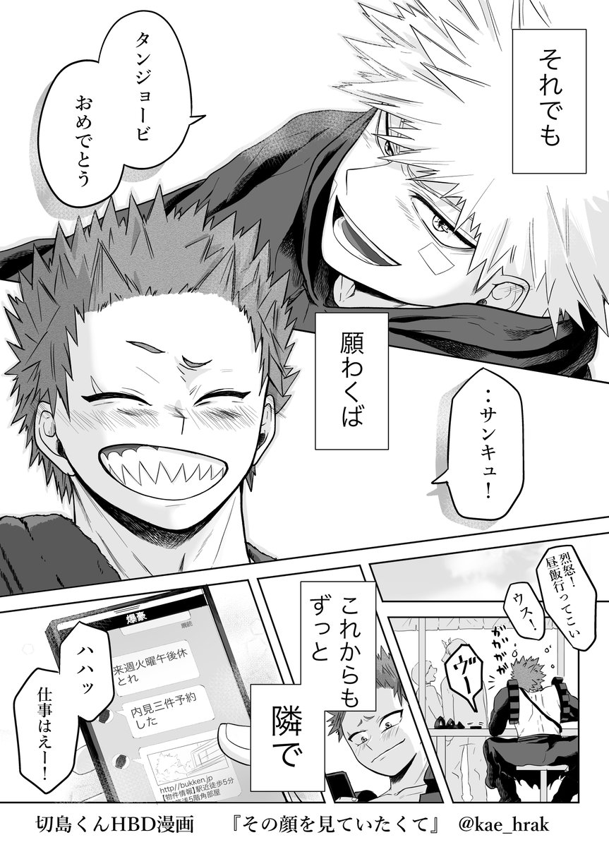 切爆(烈爆)ラブラブ漫画(4/6) #切爆用切誕生祭2021 大遅刻で恐縮ですがタグお借りしました! 16日にアップした漫画のX年後のお話なので、よろしければツリーと併せてお読みください☺️一応単品でも読めるかと。 改めてきりしまくん、おめでとう~!🎉切爆に幸あれ!!