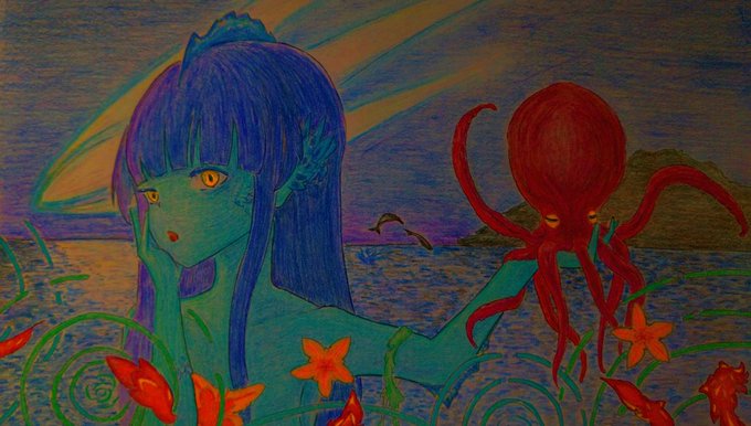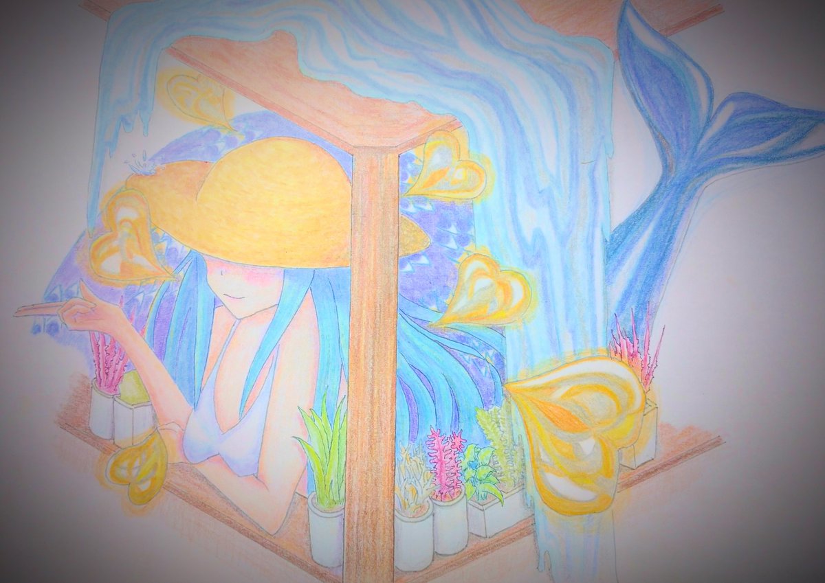 水色悼夏。 #イラスト #アナログイラスト #illustrations #色鉛筆 #夏