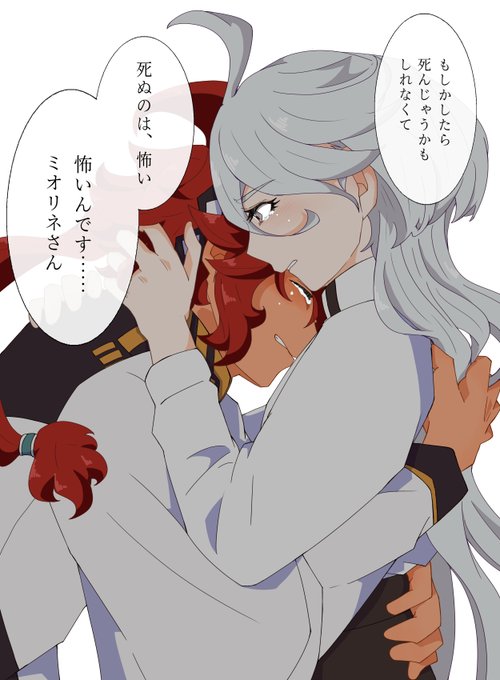 決戦に赴く前にハグのひとつやふたつはしてるでしょ、な妄想。 スレッタがミオリネさんのあの言葉に返事しなかったのは、この先無事では済まないことを覚悟してたからなのかなぁ、とか。 #水星の魔女 #スレミオ
