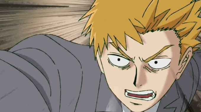 New Reigen frames.I d love to see him shake his ass in the third season please Bones i beg you. #mp100 #mobpsycho100 #reigen #reigenarataka #anime