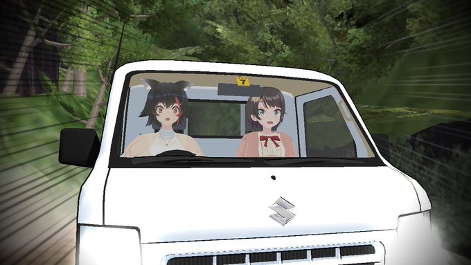 深夜放送見ながら作ってました。二人のやり取りやミオちゃんのアグレッシブな運転も面白かったですw 怖いゲームですが頑張ってクリアめざしてください。 #みおーん絵 #プロテインザスバル
