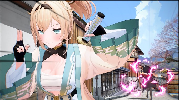 風真いろはさん、沙花叉クロヱさんのモデルお借りしたのでポーズ取らせてみましたwたららたらこ様 いろは「セミの呼吸」空蝉! #いろはにも絵を #さかまた飼育日記