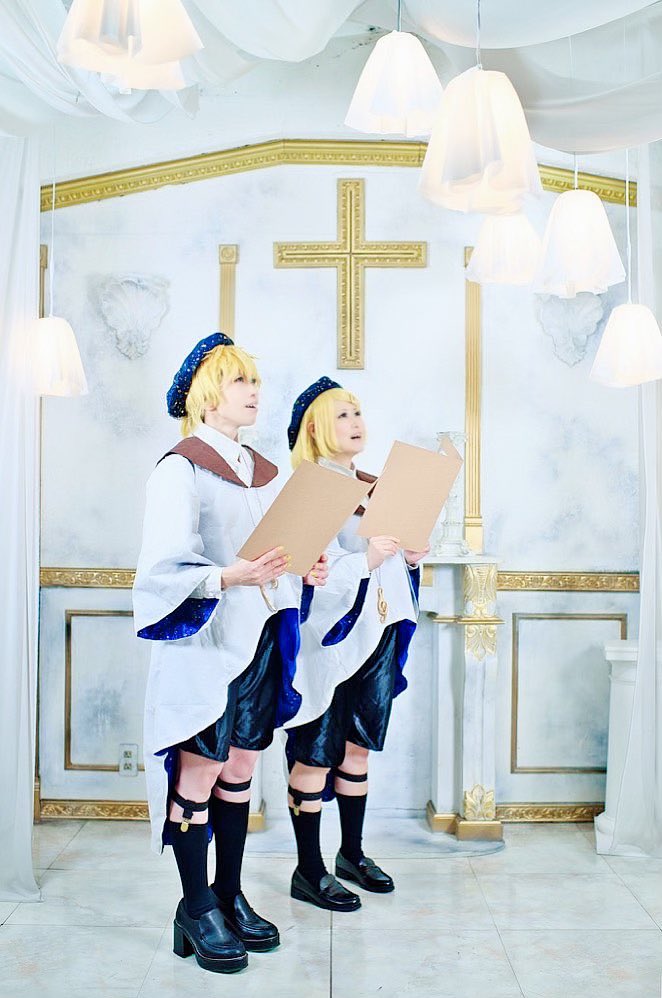 【コス写真注意】 速報〜。 るなさんとlilijaさん(@81_lilija )が描かれた鏡音イラストの衣装をやっとスタジオ撮影できました! 次は本物の教会とか、キラキラしたアイテムたくさん用意して撮影したい。 写真はきゃぱさん(@capa3939 )です! ありがとうございました!!