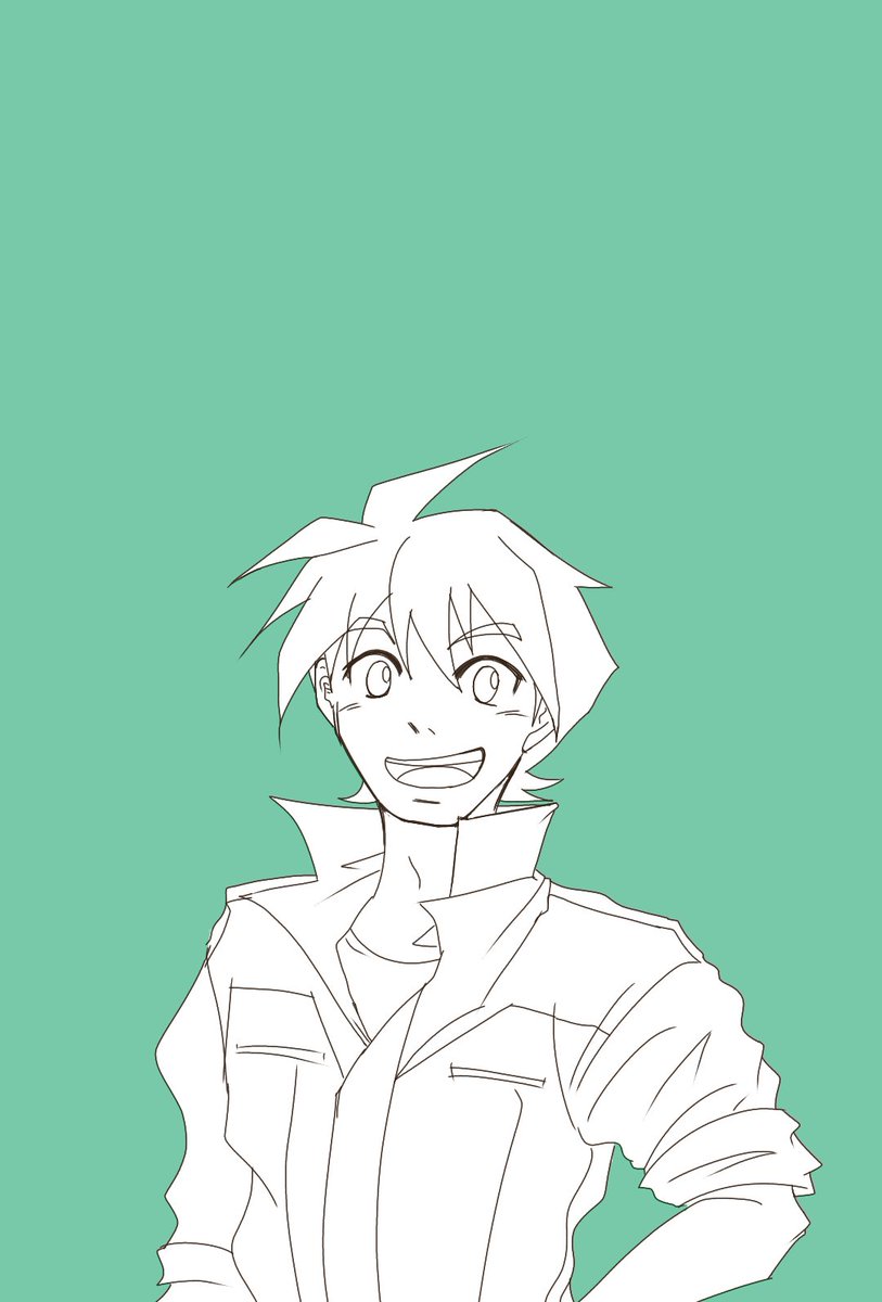 #今月描いた絵を晒そう セイバーの倫太郎。笑顔の素敵な真面目なわんわん系好青年。ドストライクじゃないですかw 久々に描くので画像検索したのですが、首回りと胸板の変化…。凄いですね。パワー(きんに君構文)