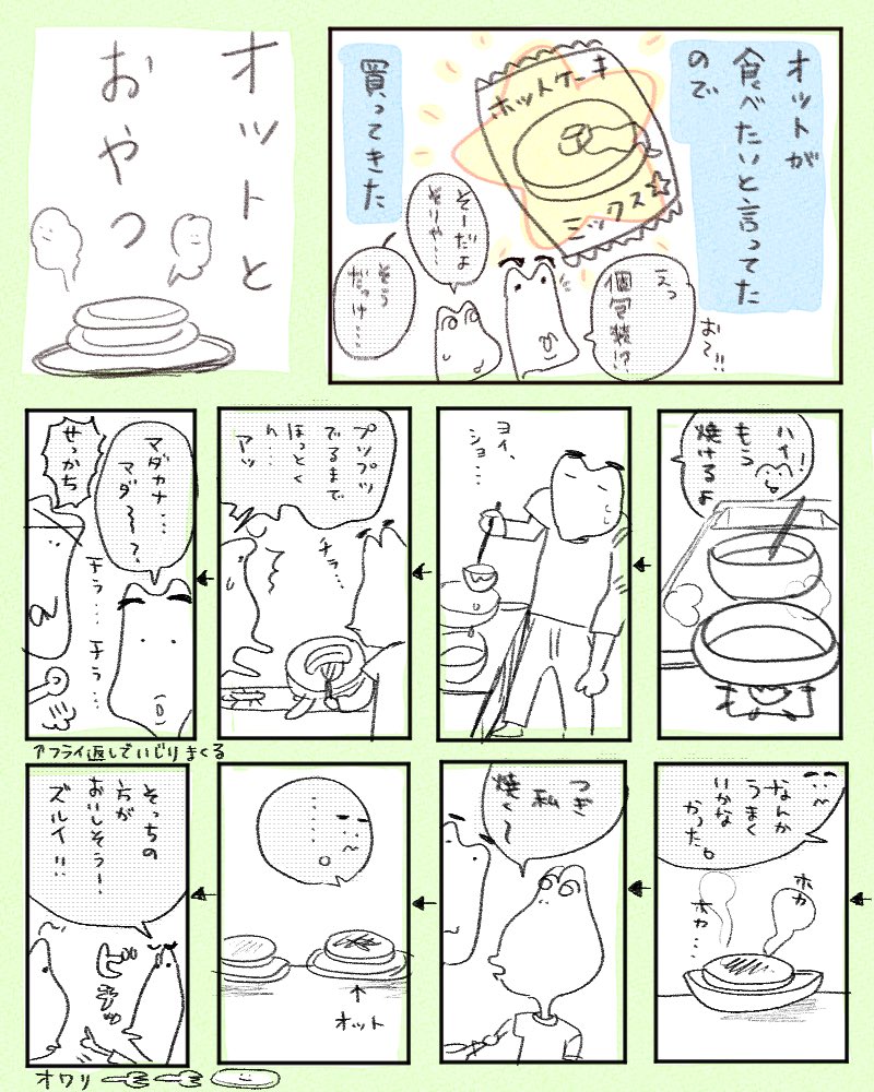 2 18 オットとおやつ🥞 もちろん美味しく食べたよ🙆 #コミックエッセイ #エッセイ漫画 #漫画が読めるハッシュタグ #創作漫画 #絵日記 #エッセイ 22/10/13 19:58