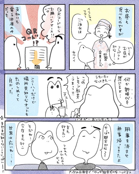 0 8 用事があって銀座に初めて行った話③ 確かに、注文も決済も電子にしちゃえばお店も少しの人数で外国の方でもやりやすいよな…📱 最後まで読んでくれてありがとうございます🌟 #コミックエッセイ #エッセイ漫画 #漫画が読めるハッシュタグ #創作漫画 #絵日記 #エッセイ 22/10/25 20:23