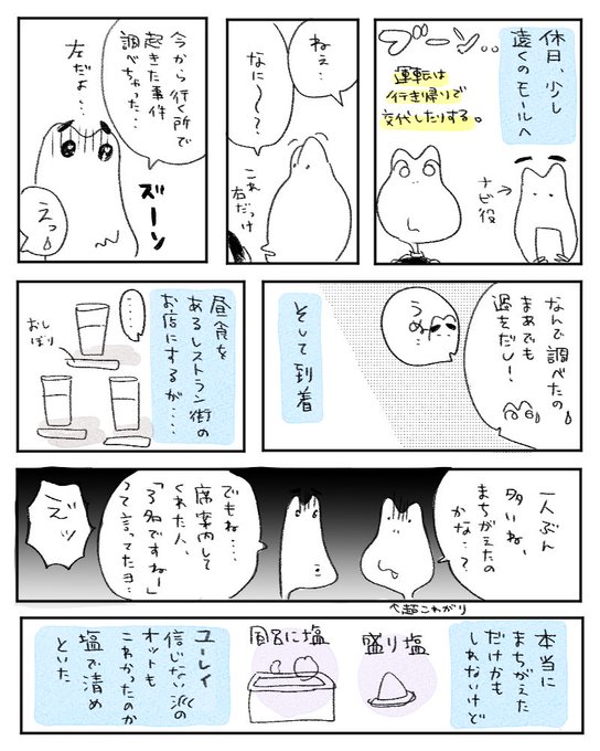 今日はちょっと怖い話すみません でも、2人とも何ともないしただの人数間違いだったのかも🙆一応塩🧂 (私が怖がりなのでオットにも伝染しちゃったごめん) #コミックエッセイ #エッセイ漫画 #漫画が読めるハッシュタグ #創作漫画 #絵日記 #エッセイ
