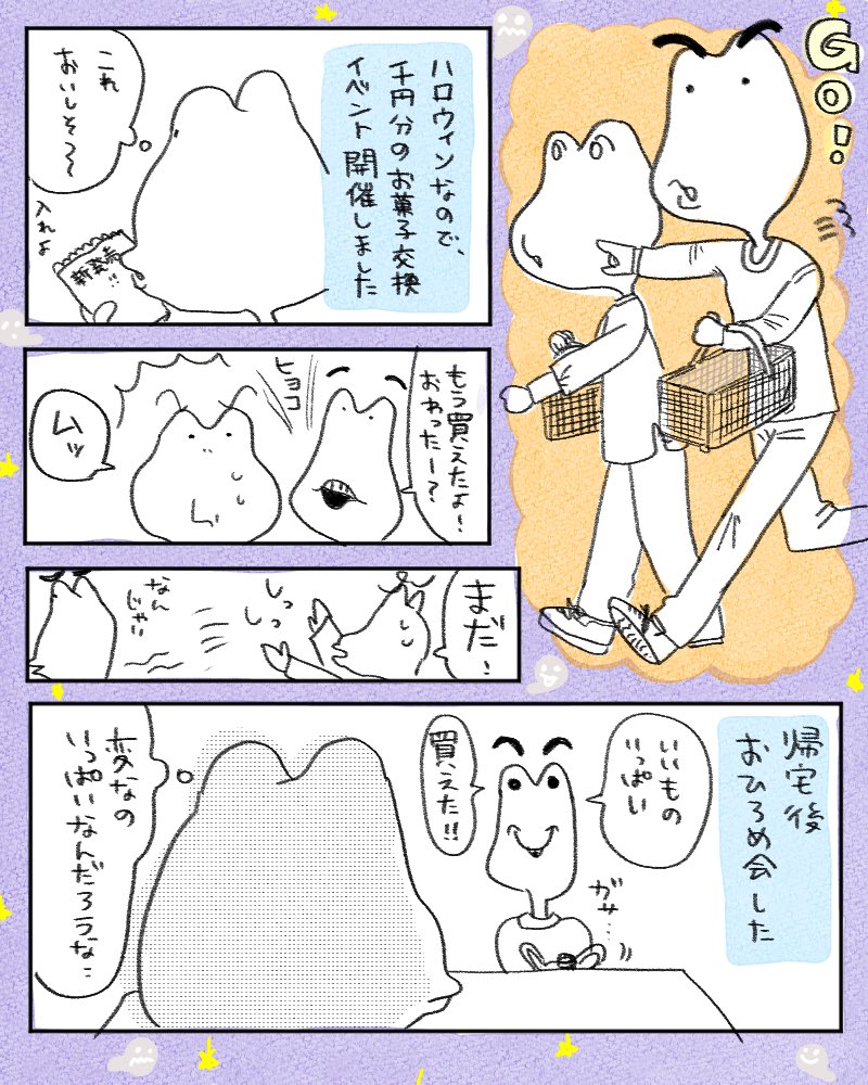 オットとハロウィンお菓子交換したよ🎃👻 #コミックエッセイ #エッセイ漫画 #漫画が読めるハッシュタグ #創作漫画 #絵日記 #エッセイ