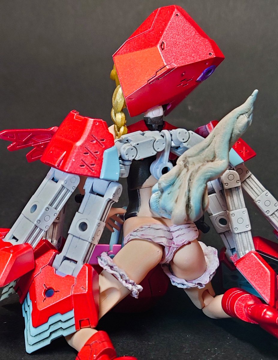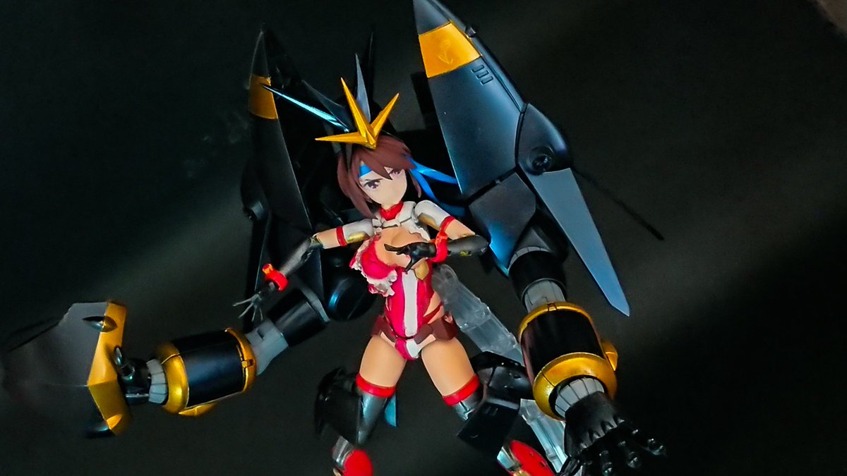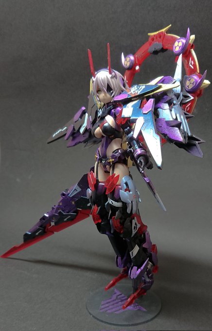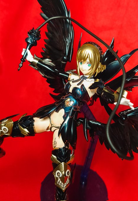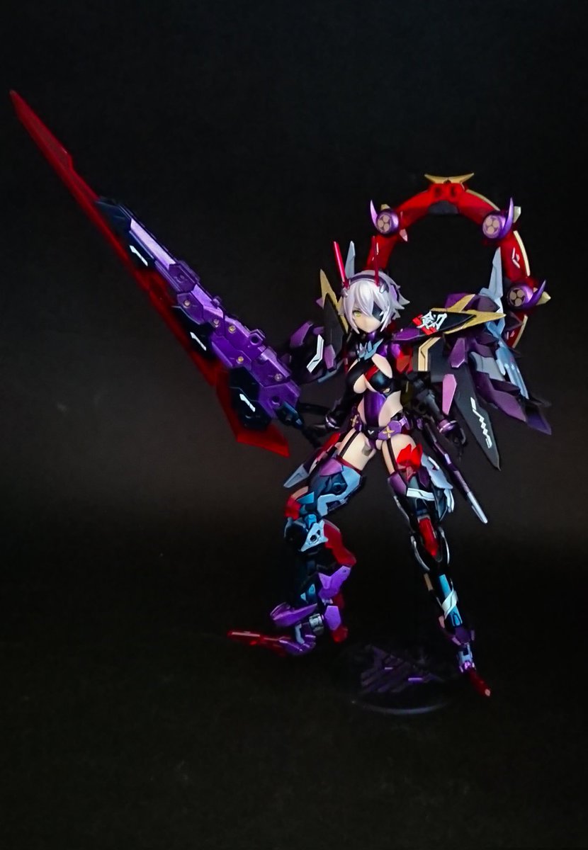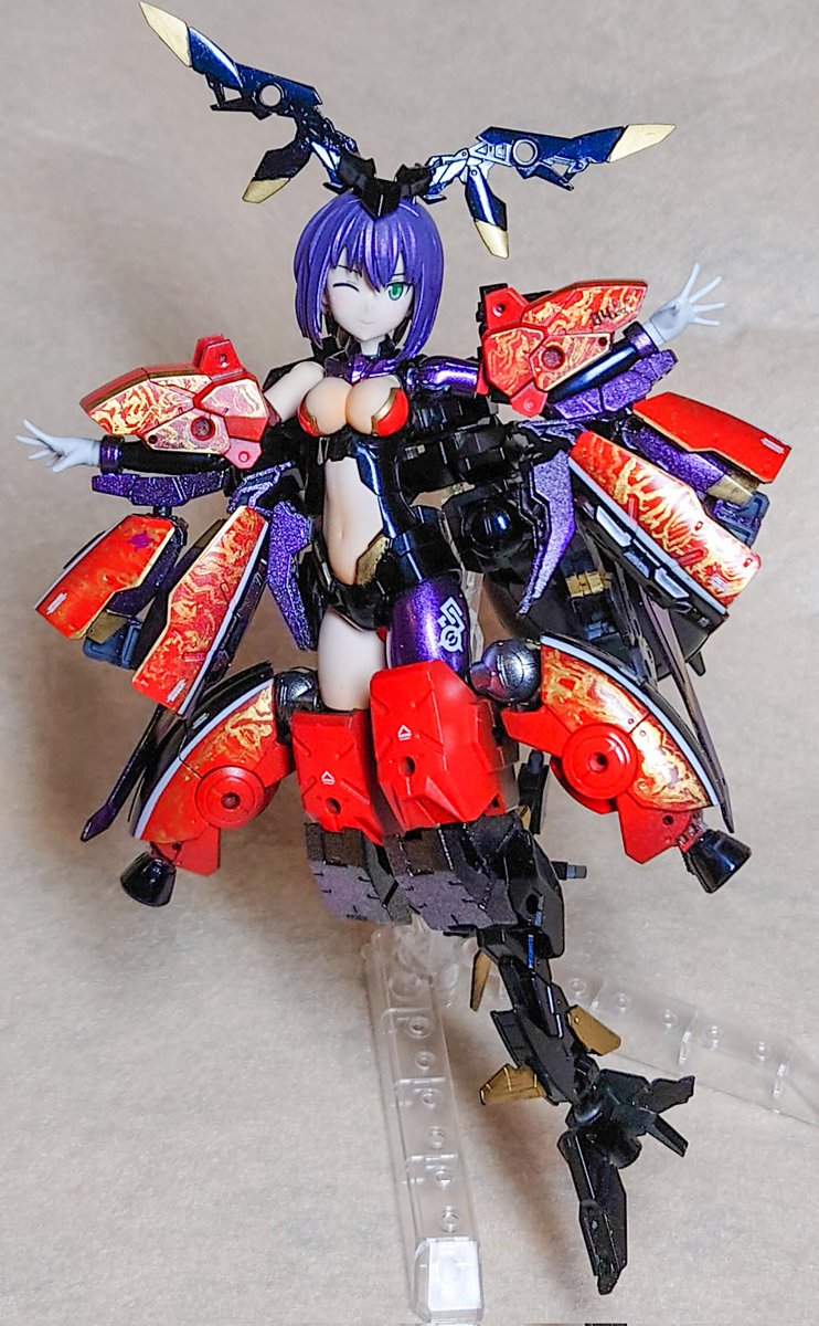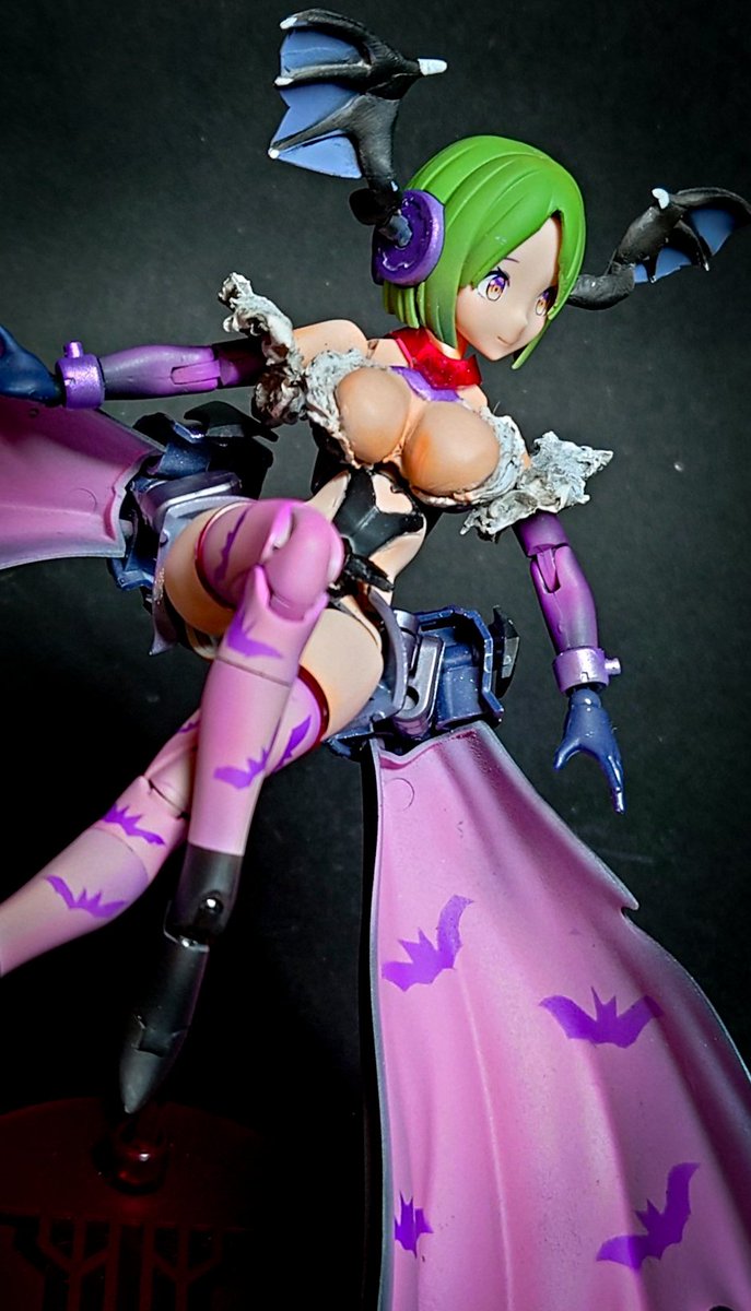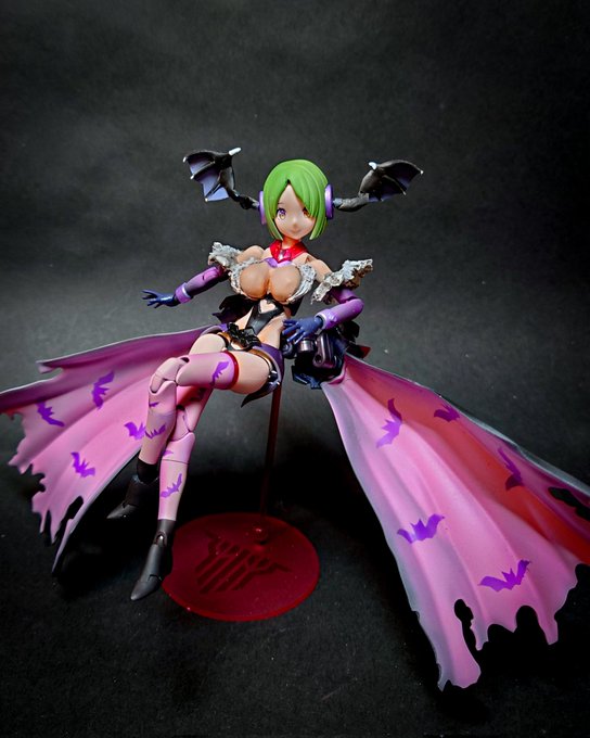 すいませんコトブキヤのモリガンです。ここを通してください。 …エクスキューショナーのマントが羽根に見えてつい作ってしまいました。赤ずきんと対戦させるかな… #プラモデル #メガミデバイス #エクスキューショナー