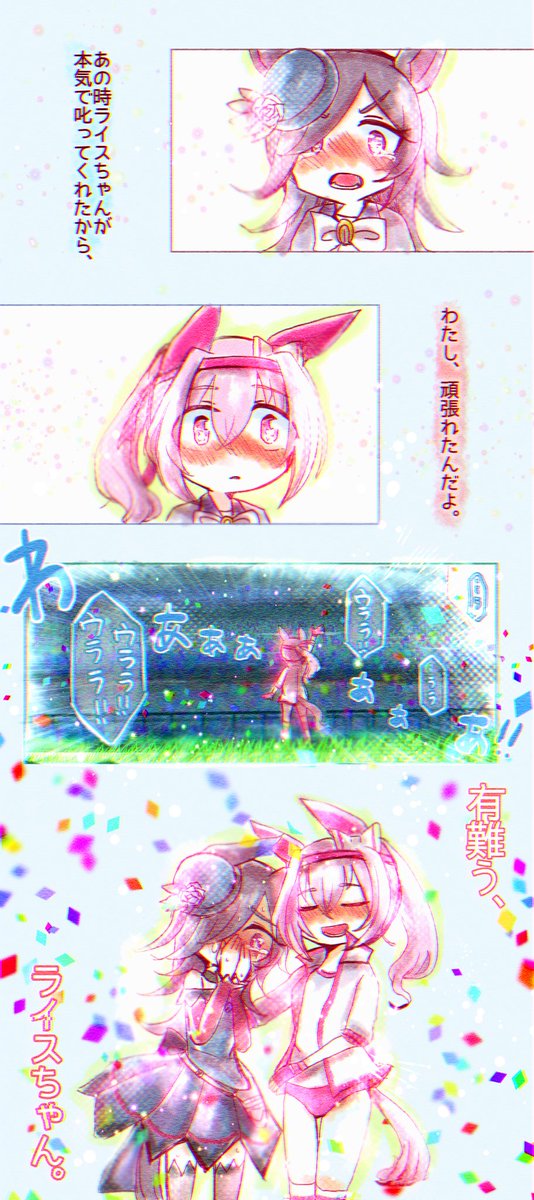 45 287 公式のチケタイ、視線もだがタイシンさんの髪飾りの配色がチケゾーなのがマジでヤバい。 23/01/01 21:32