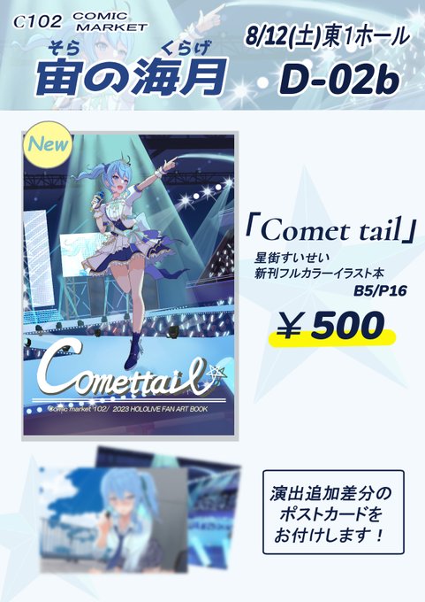 【8/12(土) C102お品書き】 サークル「宙の海月」でコミケ初参加です!✨ よろしくお願いします! すいちゃんのフルカラーイラスト本を頒布します。おまけあり! 夏コミ1日目は「東1ホールD-02b」 でお待ちしております! Webカタログ▶︎webcatalog.circle.ms/Perma/Circle/1… #C102 #C102お品書き