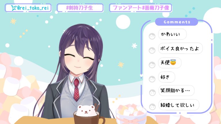 刀子ちゃんの配信画面を想像して元気だしてる。 そろそろ配信してもいいんじゃない? わたくしがタヒぬよ サーニャちゃんとコラボして欲しい:( ;´ཫ`;):絶対かわいい #菩薩刀子像