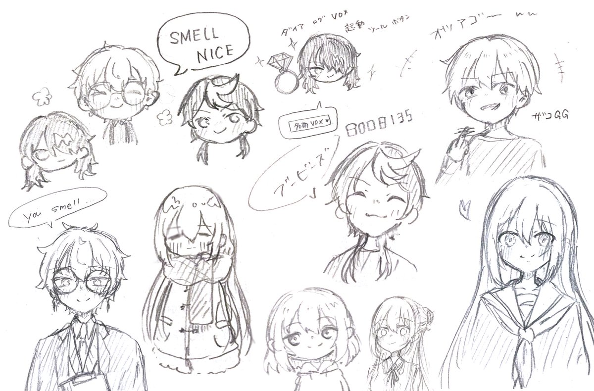 0 8 テスト中に描いてた落書きまとめてみた⸜( ⌓̈ )⸝✐☡ うる覚えで描いてるから似てなかったりするけど許して 22/02/21 20:01