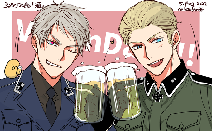 52 369 【遅刻】お題:「お酒」 +30 min. #普独版ワンドロ @hudoku_1 2年間本当にありがとうございました!色々な素敵な普独を拝見できて楽しかったです(`フ´)(-|´-甘b 22/08/05 05:48