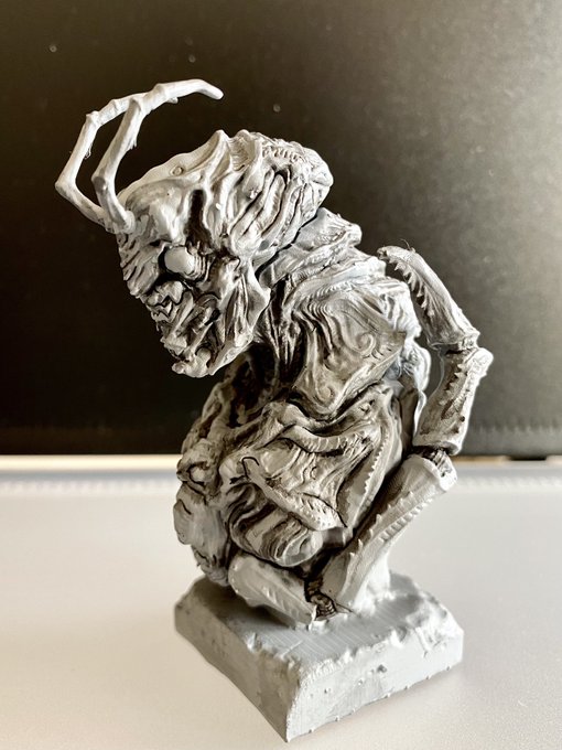 ワンフェス新作 wip 背面に三日月を造形しましたが、一気に雰囲気が出て嬉しい。ミカヅキツノゼミが主なモチーフですが、三日月や死、使者なども要素としてデザインに入れてモデリングしています。 存在感が出る様に造形していきたい。 #ZBrush #3dmodeling #WF2023S