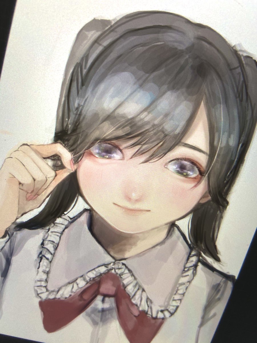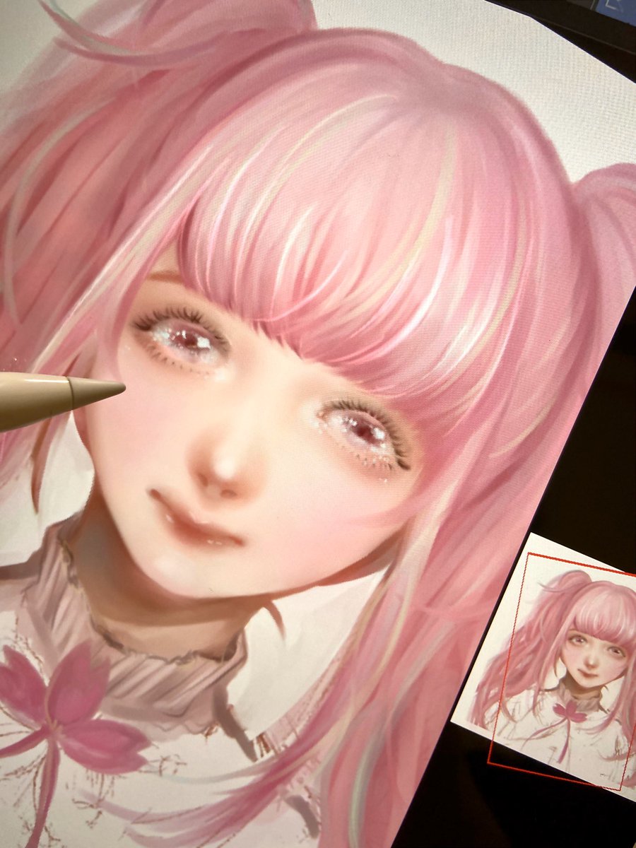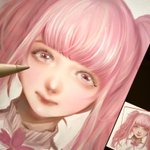 最近は家にいる事が多いので、よく絵を描いています✏️😊 春なので、桜色の髪の女の子を描きました!🌸 目のキラキラを描いてる時が一番楽しいです😆✨