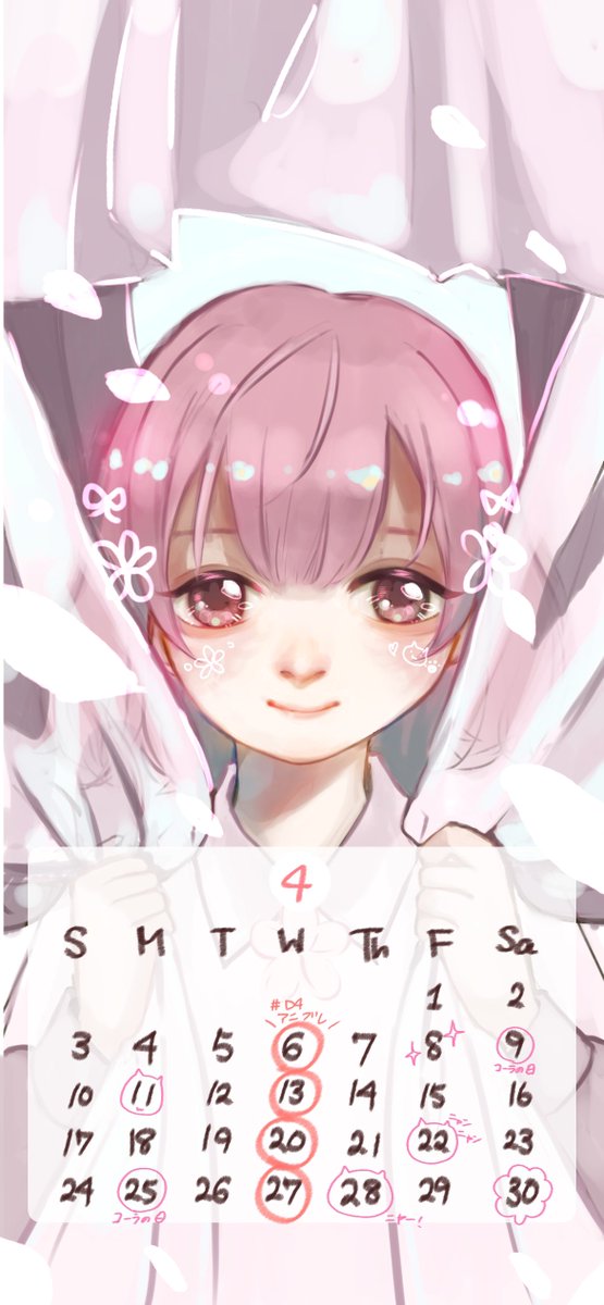 🌸4月のカレンダー🗓 3月のカレンダーとして描いていたはずが、いつのまにか4月になってました! スマホ待ち受けサイズなのでぜひ使ってくださいね! データが飛ぶという悲劇を乗り越え、 やっと私は今日から4月をスタートさせることができます…!🌸 (今回も日付部分は私が適当に落書きしました¨̮)