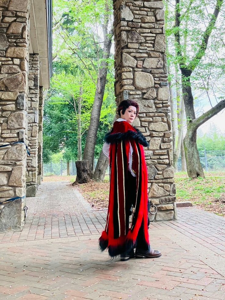 【cos】 初出し…ひよって髪長すぎたり、更衣室で初めて着てみたら頭入らなかったり、右だけ重すぎて安全ピン破壊したりしながらもとりあえず撮ってもらってきた👑 おでこが狭すぎて(眉長く描きすぎたのもありつつ)赤い謎の模様が入りきらない😂 2枚目はチョコさんが撮ってくれたやつ📸ありがとう~✨