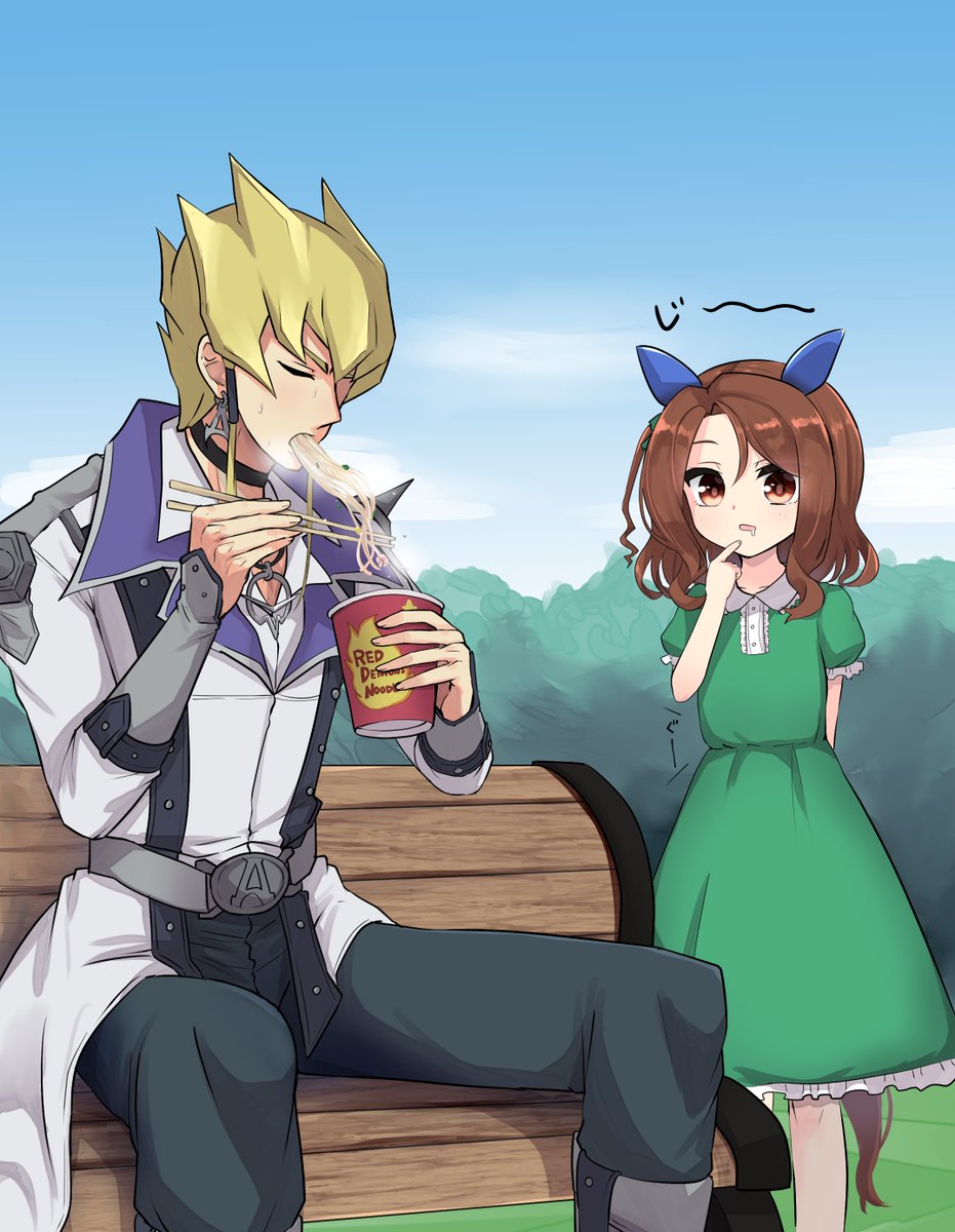87 151 skebでご依頼いただいたレッドデーモンズヌードルを食べるジャックとそれを見るキングヘイロー(幼)です どういうシチュなのかまるで意味が分からんぞ! 23/04/30 16:52