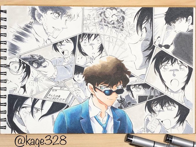 この3人を描き終えて謎の達成感🤣 キッド様が1番良きかなー(*´ω`*) #名探偵コナン