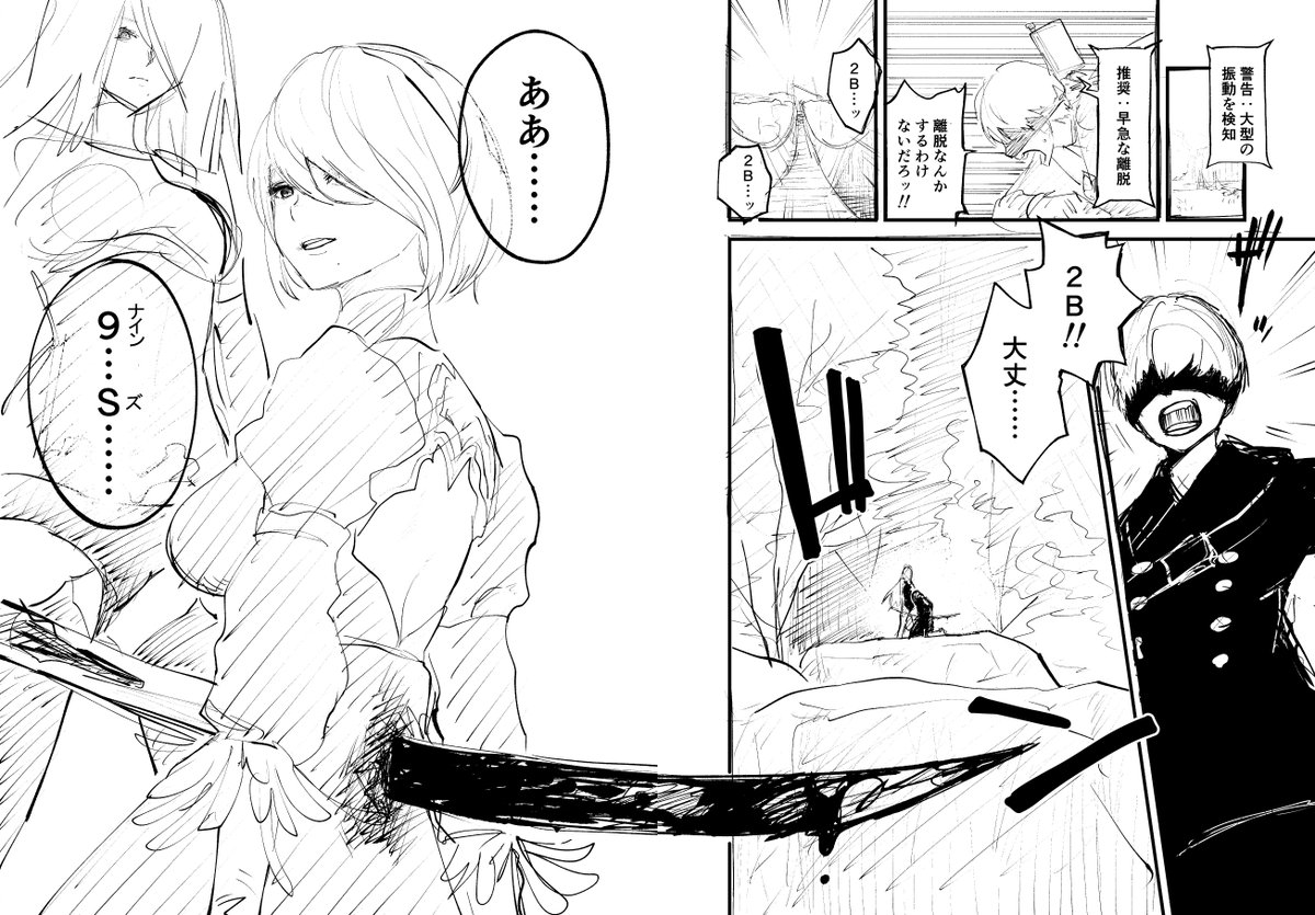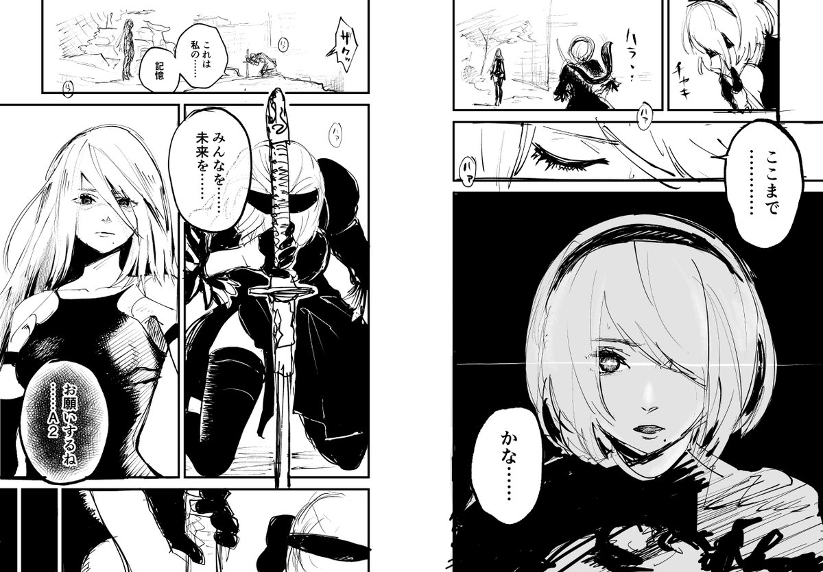 ニーアオートマタアニメ化うれしい これは昔描いたコミカライズ的な落書き #ニーアオートマタ