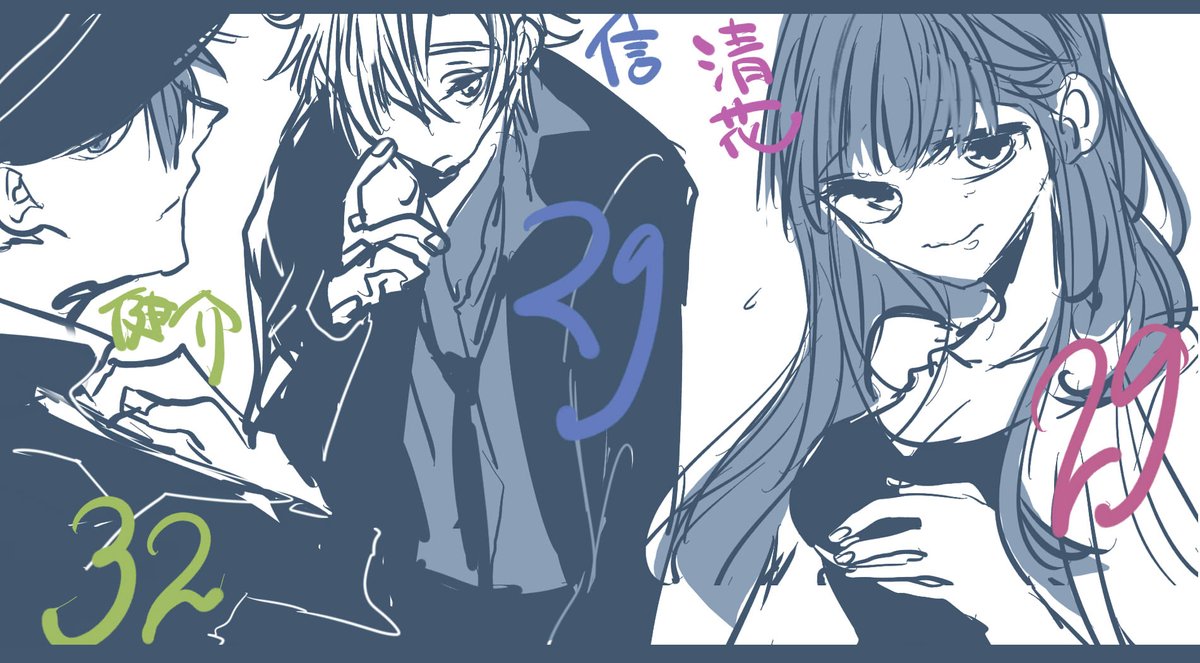 17 79 (※同盟コク)いつかの舞台裏、演者は微笑む。 前×5年度からさらに引き続き、描き納めに大好きな3名を。今年1年もありがとうございました!来年も好きなように好きだけ、まったり遊びたいと思います。来年は本をつくるぞ~~! 22/12/31 22:36