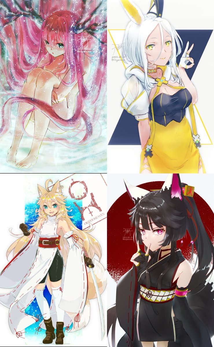 #今月描いた絵を晒そう💐🌸🍃🦊🐇な4月でした。 日付的に丁度被ったので #ゴールデンウィークSNS展覧会2022 #イラスト #illustration ALT説明欄に全体画像リンク有ります。